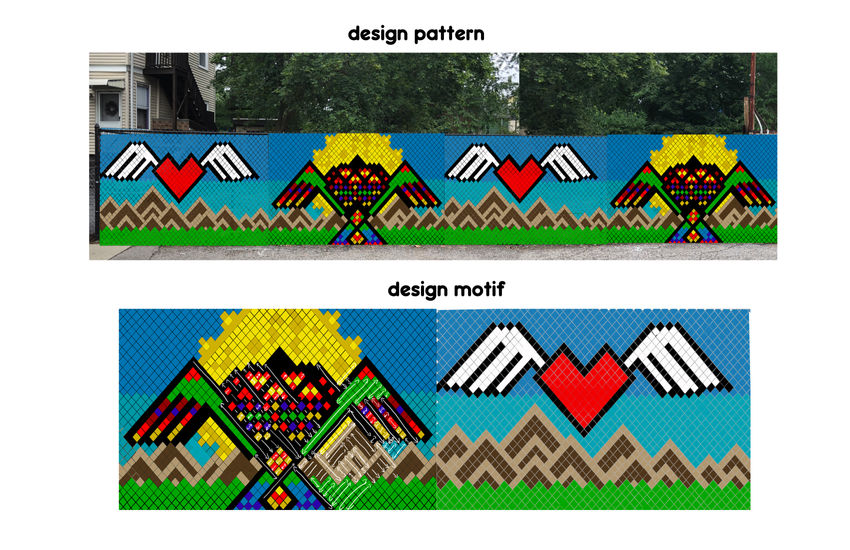 Miral Love is Everywhere te kreye pa tise tep kloti an polietilèn nan kloti chainlink. Adolesan yo te bay yon griy dyagonal kote yo te kapab rann desen yo nimerik. Yon fwa yo fini, desen yo te prezante ak diskite. Gwoup la deside konbine twa konsèp konsepsyon diferan ansanm. Apre yo fin finalize yon konsepsyon, adolesan yo enstale tep kloti a pou kreye miral la.